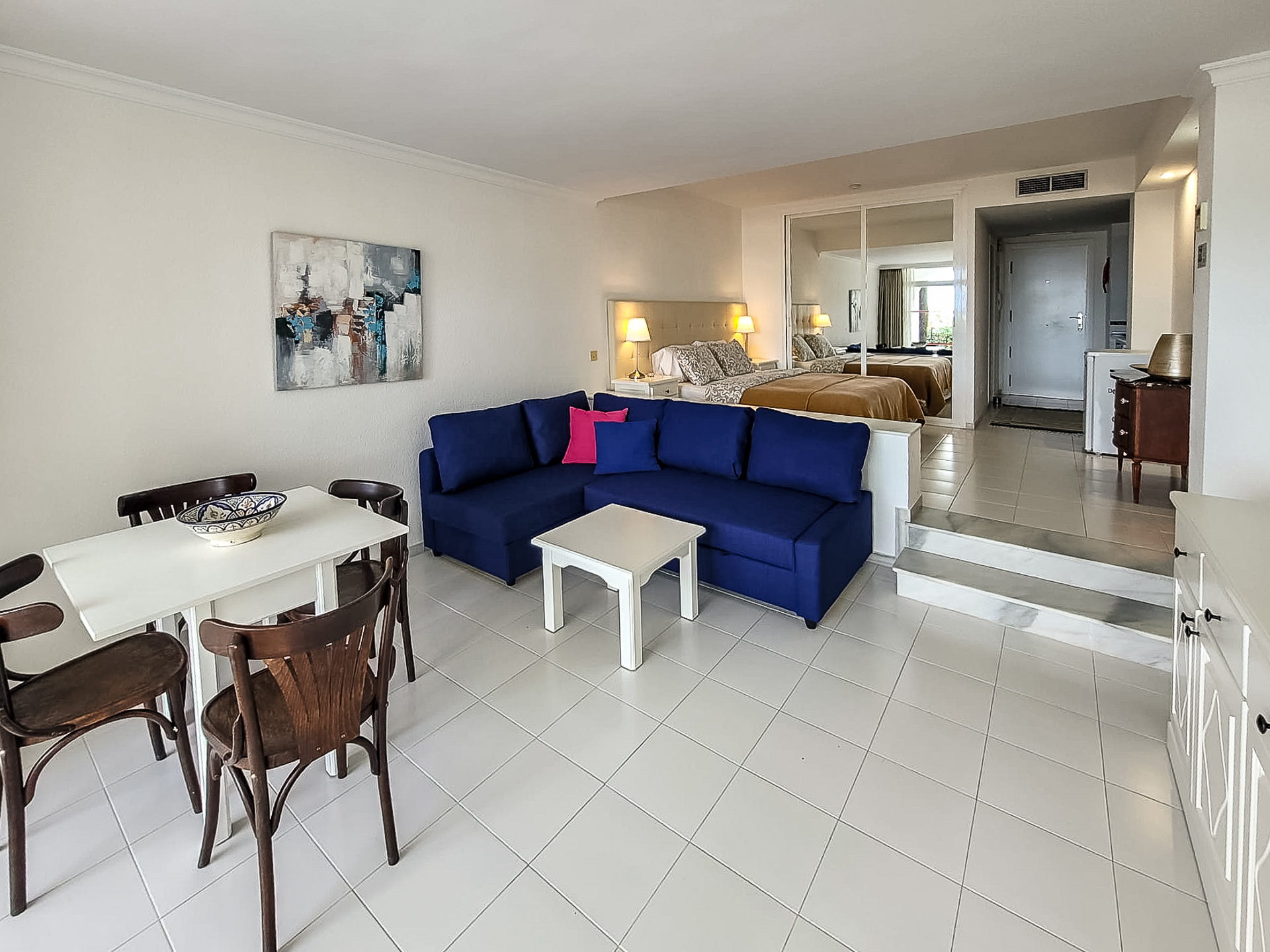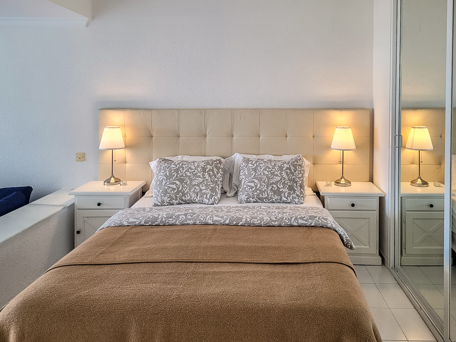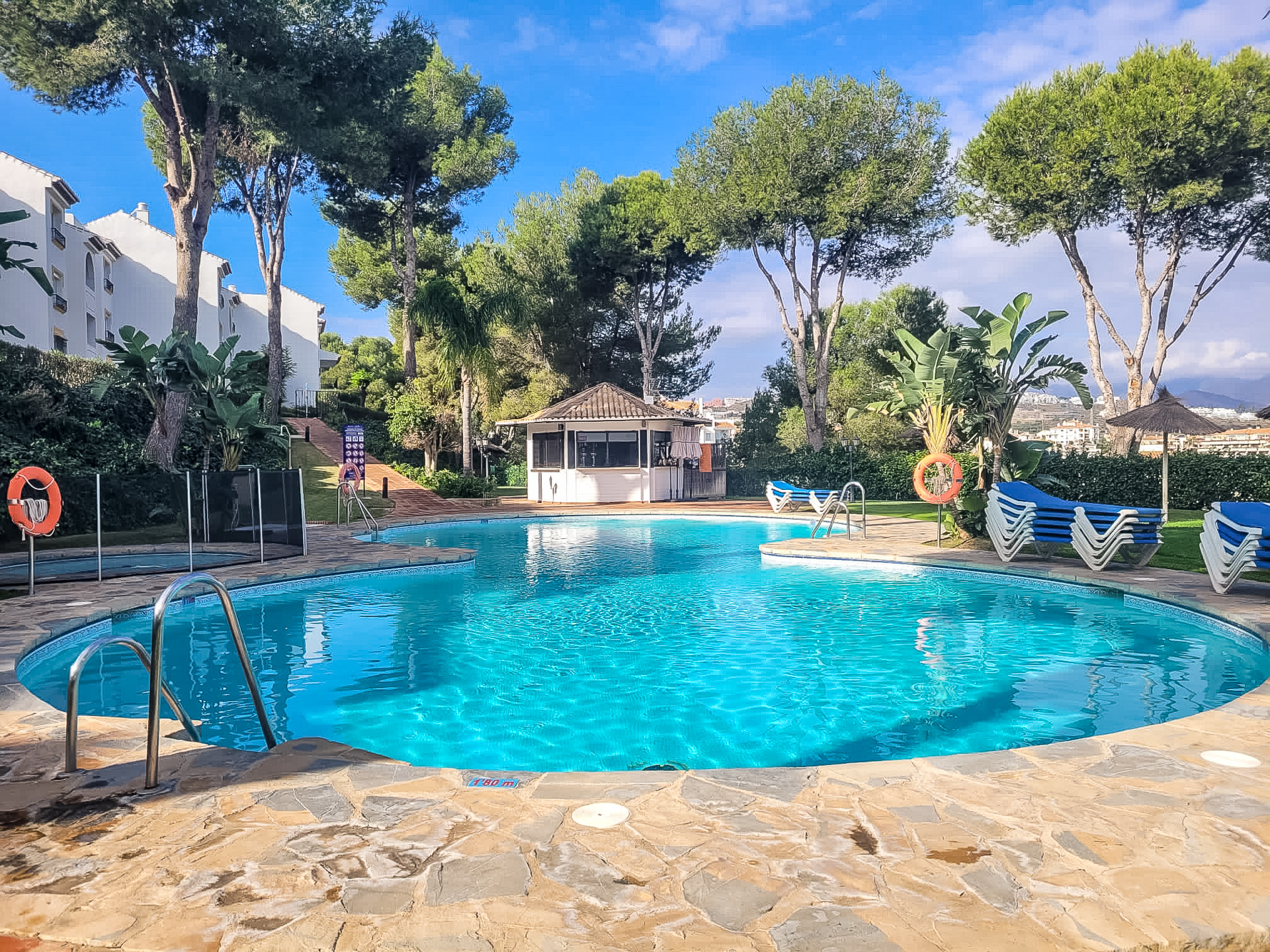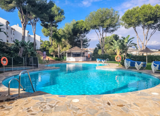 Apartament z widokiem na morze położony jest w willowej dzielnicy z pięknymi ogrodami i roślinnością, tuż przy polu golfowym Miraflores. Apartament składa się z salonu z sypialnią, kuchni oraz tarasu z wyjściem na trawę.W salonie znajduje się rozkładana sofa. Na wyposażeniu jest zmywarka, lodówka, pralka, żelazko, deska do prasowania, czajnik bezprzewodowy, toster, mikrofalówka, kawiarka, komplet naczyń i garnków. Dostęp do Internetu nieograniczony. W apartamencie jest klimatyzacja. Na terenie osiedla znajdują się dwa baseny w tym jeden z barem. Bezpośrednie loty do Malagi, oferują linie lotnicze Ryanair, Wizzair i LOT.